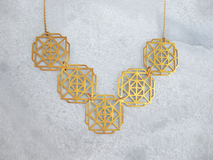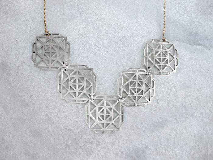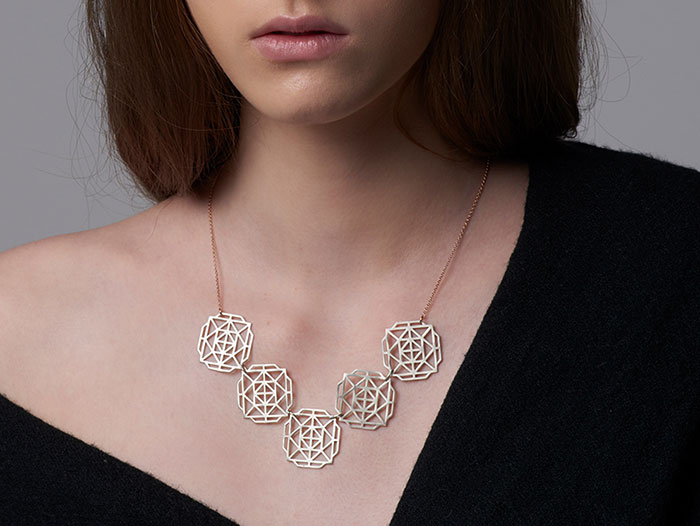 Composition of five geometric roses on chain necklace